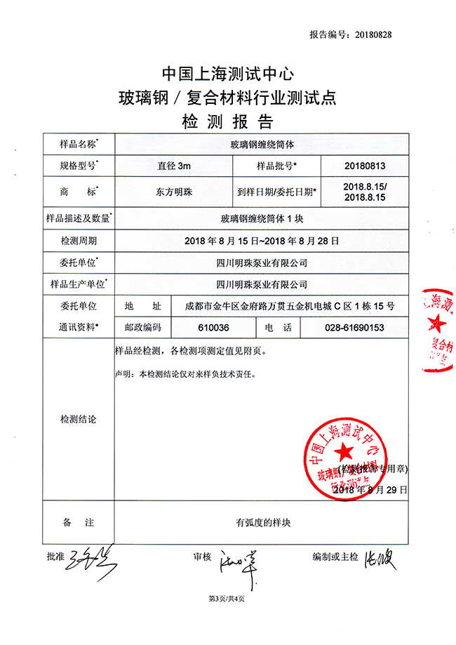 FRP玻璃钢缠绕筒体拉伸强度检测报告