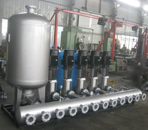 BPS hot water tank dedicated frequency conversion water supply unit is a cutting-edge pressurized water supply equipment composed of a new performance PID frequency conversion control cabinet and two or more water pumps in parallel, which can automatically adjust to meet the user's constant pressure variable water supply requirements. The pressure of the water supply pipe network is kept constant, and the entire water supply system is always kept in a highly efficient and energy-saving state. There are two types of water supply: frequency conversion water supply and pressure water supply. Frequency conversion water supply is an ideal water supply method that automatically adjusts the speed of a certain pump or puts and exits multiple pumps to keep the pressure of the water supply pipe network constant. The operation is simple.