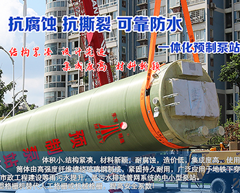 The main structure of our company's prefabricated pumping station is made of fiber-wound fiberglass reinforced plastics, which is strong and durable. The strength is equivalent to several times that of traditional laminated fiberglass reinforced plastics. It is corrosion-resistant, tear-resistant, and reliable and waterproof. This technology is widely used in sewage lifting and is a small and medium-sized pumping station for sewage discharge pipe network systems.