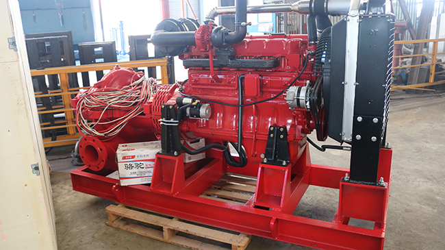 我司柴油机中开消防泵组生产检测完成应用喷淋灭火建设