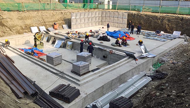 我司BDF地埋式一体化消防水箱+泵房应用安装市政工程建设现场!