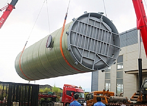 我司3.8米*19.8米大型玻璃钢一体化预制泵站安装